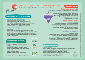 - Présence toute la soirée : service des vins, commentaires et présentation des partenaires gourmands (domaines viticoles et producteurs) et animation (jeux en bois et mini balades en Dyane).